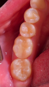 今回、下顎6番にセラミックインレー(二ケイ酸リチウム)をセットしました。