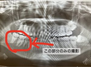👇パノラマ写真の矢印の部分のみ撮影したのが、先ほどのデンタル写真です📸