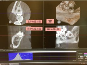 また、根幹治療という根っこの治療の際、治療の際に使用している拡大鏡でも見えないくらい根っこの管が細くなってしまっていたり、根の形が複雑だったりする場合もCT写真で根の状態を確認することがあります!